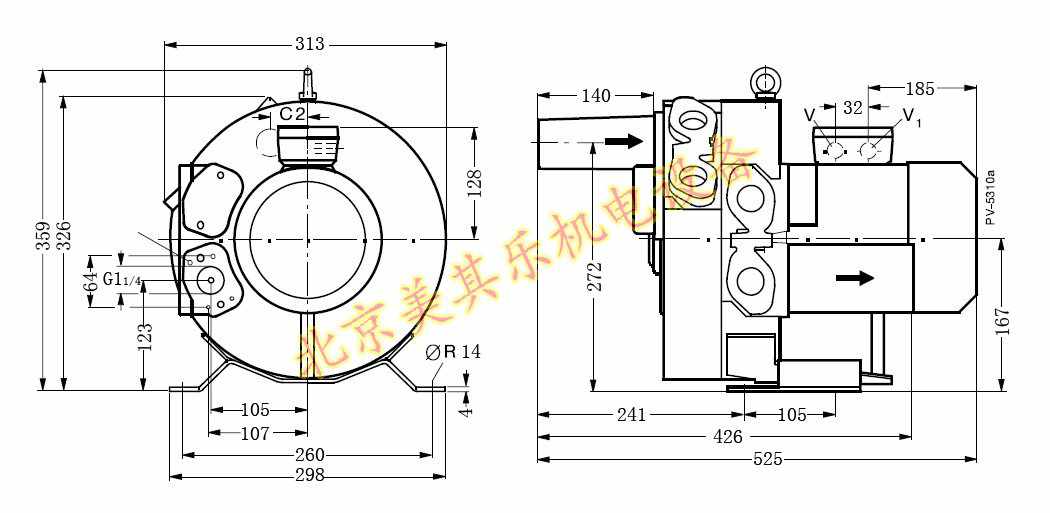 4GH 220/0.81kw高壓鼓風機側(cè)面圖